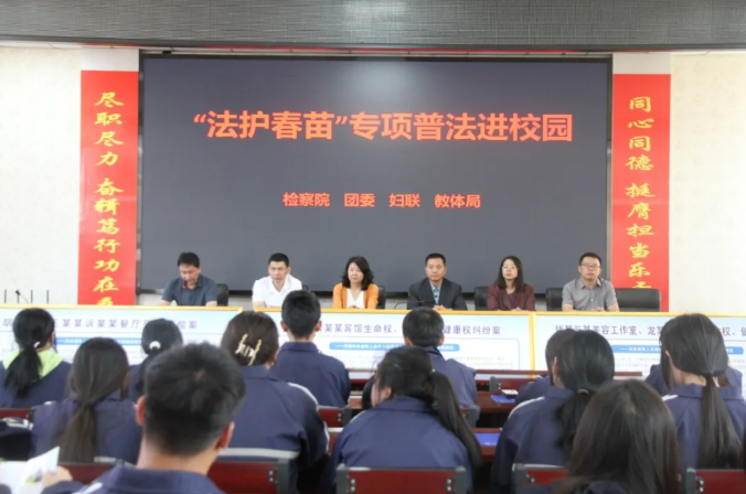 新學(xué)期伊始,為進(jìn)一步提升未成年人法治意識(shí)、法治觀念和自我保護(hù)能力,9月9日,靜樂縣檢察院攜手縣人大、教體局、團(tuán)縣委、婦聯(lián)共同走進(jìn)靜樂縣職業(yè)中學(xué)開展“法護(hù)春苗”法治進(jìn)校園活動(dòng),將法治關(guān)懷與守護(hù)送到學(xué)生身邊。院黨組書記、檢察長(zhǎng)李冰參加活動(dòng)。