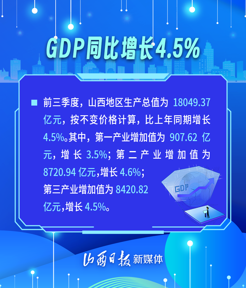 10月23日,山西省統(tǒng)計局和國家統(tǒng)計局山西調查總隊聯(lián)合發(fā)布前三季度山西經濟運行情況。前三季度,山西經濟繼續(xù)保持平穩(wěn)復蘇、穩(wěn)中向好的發(fā)展態(tài)勢,三次產業(yè)穩(wěn)步增長,有效需求逐步恢復,就業(yè)物價總體穩(wěn)定。詳細數據,一組海報了解。