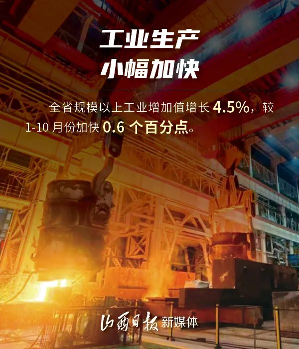 12月20日,省統(tǒng)計局發(fā)布1至11月份山西經(jīng)濟(jì)運行情況。1至11月份,山西扎實推動高質(zhì)量發(fā)展,穩(wěn)增長政策效應(yīng)持續(xù)釋放,主要指標(biāo)增勢良好,工業(yè)生產(chǎn)小幅加快,消費市場穩(wěn)步復(fù)蘇,就業(yè)物價總體平穩(wěn),經(jīng)濟(jì)運行穩(wěn)中向好。一組海報了解1至11月山西經(jīng)濟(jì)成績單。