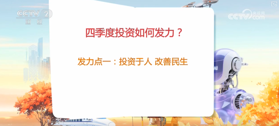 國(guó)家信息中心經(jīng)濟(jì)預(yù)測(cè)部產(chǎn)業(yè)經(jīng)濟(jì)研究室主任魏琪嘉介紹,四季度整個(gè)投資的重點(diǎn)領(lǐng)域,很多集中于民生項(xiàng)目建設(shè)方面,包括城市更新改造,地下管廊改造,包括停車(chē)場(chǎng)建設(shè)以及高標(biāo)準(zhǔn)農(nóng)田等,這些事關(guān)民生的一些重點(diǎn)的領(lǐng)域,實(shí)現(xiàn)這種投資于物與投資于人的這種高效協(xié)同,更多的投資于人。