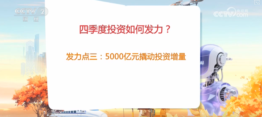 央視網(wǎng)消息:投資是拉動(dòng)經(jīng)濟(jì)增長(zhǎng)的“三駕馬車(chē)”之一。四季度,國(guó)內(nèi)投資發(fā)力的重點(diǎn)在哪里,專(zhuān)家進(jìn)行了權(quán)威解讀。