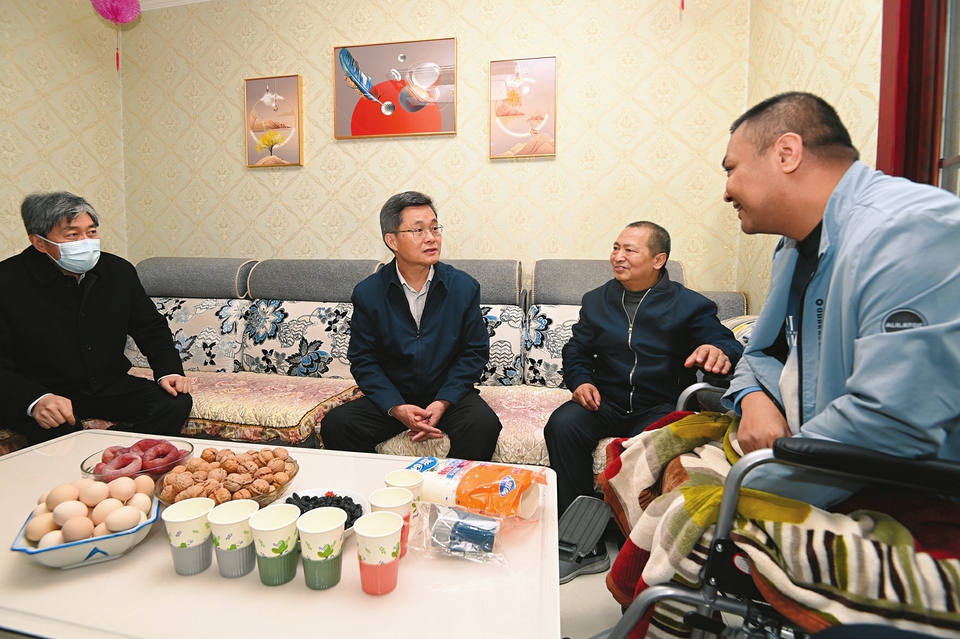 易地搬遷不僅讓群眾挪了窮窩、住上新房,更讓大家的精神面貌煥然一新。郝生偉、郝華君父子二人有不同程度殘疾,面對(duì)生活依然樂(lè)觀向上。藍(lán)佛安入戶了解他們的身體、生活狀況和享受救助政策情況。父子倆看到省委書(shū)記來(lái)了,你一言我一語(yǔ)表達(dá)著對(duì)黨和政府的感激之情。聽(tīng)到郝華君希望開(kāi)一間網(wǎng)店,力所能及地回報(bào)社會(huì)時(shí),藍(lán)佛安高興地點(diǎn)贊。他動(dòng)情地說(shuō),共產(chǎn)黨就是給人民辦事的,黨和政府始終是人民群眾的堅(jiān)強(qiáng)依靠。大家在脫貧攻堅(jiān)的路上沒(méi)有掉隊(duì),在奔向現(xiàn)代化和共同富裕的路上,黨和政府也一定不會(huì)讓大家掉隊(duì)!藍(lán)佛安指出,社區(qū)黨員干部要厚植為民情懷,多關(guān)心弱勢(shì)群體,拿出更多針對(duì)性幫扶舉措,解決好群眾的急難愁盼問(wèn)題,讓大家生活有靠、日子有盼、發(fā)展有機(jī)會(huì)。他強(qiáng)調(diào),要進(jìn)一步完善黨建引領(lǐng)社區(qū)治理機(jī)制,建強(qiáng)服務(wù)陣地,更好地把政治優(yōu)勢(shì)、組織優(yōu)勢(shì)轉(zhuǎn)化為治理效能,以社區(qū)“微治理”撬動(dòng)民生“大幸福”。