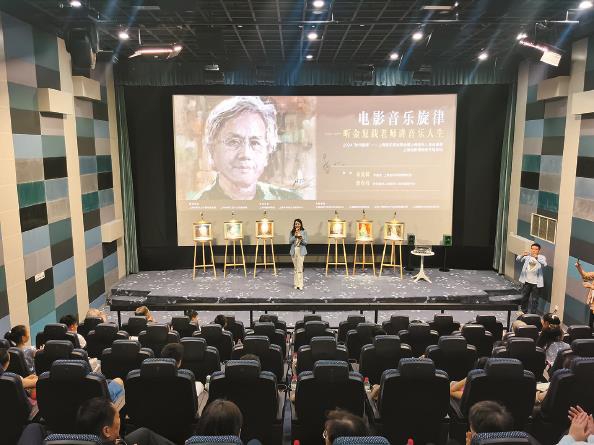 走進電影博物館的藝術(shù)影廳,可以看到大銀幕前放置了六幅油畫肖像,分別是賀綠汀、黃準、呂其明、陳傳熙、湯沐海等與電影音樂創(chuàng)作密不可分的作曲家——這些肖像正出自賀壽昌之手。今年82歲的金復載自25歲起從上海音樂學院畢業(yè)之后,就進入動畫片和電影配樂領(lǐng)域。而他退休后,還一腳踏入了如今十分興盛的音樂劇,成為上海音樂學院音樂劇系的首任系主任。因此,他的音樂生涯,始終是“時代旋律”。他見證了廣受大眾喜愛的電影、動畫、音樂劇音樂的發(fā)展歷程?,F(xiàn)場播放了央視為他拍攝的紀錄片,畫面上呈現(xiàn)了他的代表作——電影《紅河谷》、動畫片《哪吒鬧?!贰度齻€和尚》《雪孩子》,還有電視劇《濟公》里的“鞋兒破、帽兒破……”讓現(xiàn)場不同年齡的觀眾都回憶起各自的美好童年……