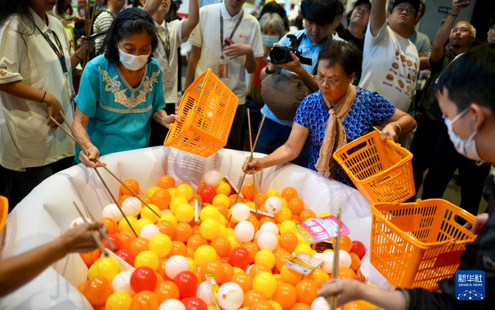8月14日,觀眾在第35屆美食博覽上參加互動游戲。新華社發(fā)(呂小煒 攝)