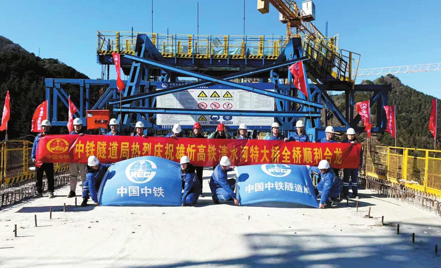 自2023年3月16日首根樁基開鉆以來,中鐵隧道局集團(tuán)建設(shè)團(tuán)隊(duì)晝夜奮戰(zhàn),始終秉持“超前策劃、高效執(zhí)行”的建設(shè)理念。為保障施工安全與工程質(zhì)量,團(tuán)隊(duì)多次邀請(qǐng)國(guó)內(nèi)橋梁領(lǐng)域?qū)<疑钊氍F(xiàn)場(chǎng)踏勘,開展技術(shù)論證,針對(duì)不同施工方法量身定制專項(xiàng)安全方案,有效化解施工難度大、安全風(fēng)險(xiǎn)高、工期任務(wù)緊等多重挑戰(zhàn),最終嚴(yán)格按照既定計(jì)劃圓滿完成全橋合龍,展現(xiàn)了高鐵建設(shè)的“中國(guó)速度”與“中國(guó)質(zhì)量”。
