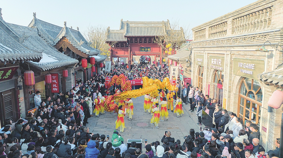 每年的“平遙中國年”都看點十足。“2024平遙中國年”推出了貫穿整個春節(jié)的“龍祥鳳瑞‘迎’新春”“龍躍鳳舞‘鬧’新春”“龍章鳳彩‘賀’新春”三大板塊15項活動。新春祈福、點“靚”古城、非遺社火等民俗活動持續(xù)上演,各地游客沉浸式體驗了獨具平遙地方特色和晉商韻味的民俗民風(fēng)。