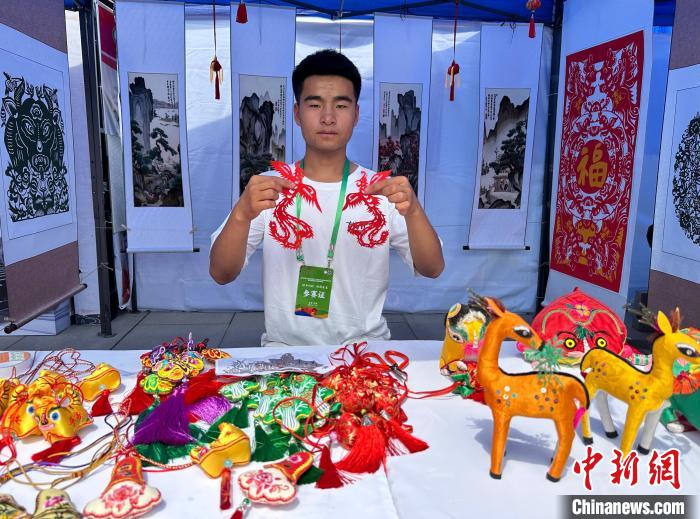 7月14日,甘肅省慶城職業(yè)中等專業(yè)學(xué)校學(xué)生張巖展示其剪紙作品。中新社記者 丁思 攝 一張紅紙、一把剪刀,兩只栩栩如生的鳳凰在張巖手中翻飛。17歲的他是甘肅省慶城職業(yè)中等專業(yè)學(xué)校學(xué)生,自幼喜好剪紙,入校后參加學(xué)校選修課,是班里為數(shù)不多的男生。 “老師會系統(tǒng)講授剪紙技巧,各類圖形線條的把控,以及西方建筑風(fēng)格樣式等等,通過專業(yè)學(xué)習(xí),讓我更加細(xì)心認(rèn)真。”張巖14日接受中新社記者采訪說,“我很喜歡中國傳統(tǒng)文化,希望通過剪紙的方式來創(chuàng)新表達(dá)。” 此次參賽,張巖和老師路彥玲5天剪出了一件紅色長裙,由老師穿在身上展示?!?0后”路彥玲是慶陽剪紙縣級代表性傳承人,任職美術(shù)教師的她,在學(xué)校開設(shè)了個人剪紙工作室,帶領(lǐng)學(xué)生探索將傳統(tǒng)文化與現(xiàn)代時尚融合,讓非遺走入現(xiàn)代生活。