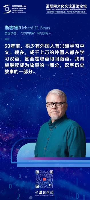 中新網(wǎng)烏鎮(zhèn)11月21日電(林卓瑋)“事物總是在變化,但文化的傳承永遠需要我們去努力?!?1日,在世界互聯(lián)網(wǎng)大會烏鎮(zhèn)峰會互聯(lián)網(wǎng)文化交流互鑒論壇上,被譽為“漢字叔叔”的美國漢學家斯睿德(Richard Sears)從創(chuàng)新傳承漢字的個人經(jīng)歷出發(fā),講述了一段跨越75年、連接中美的傳奇故事。