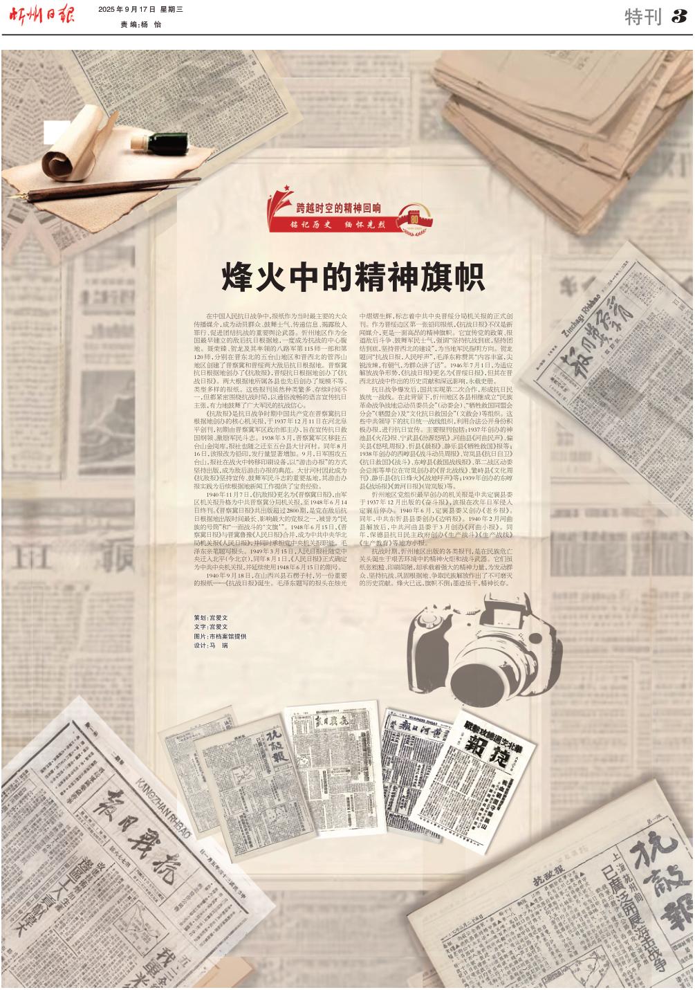1940年9月18日,在山西興縣石楞子村,另一份重要的報(bào)紙——《抗戰(zhàn)日?qǐng)?bào)》誕生。毛澤東題寫的報(bào)頭在燭光中熠熠生輝,標(biāo)志著中共中央晉綏分局機(jī)關(guān)報(bào)的正式創(chuàng)刊。作為晉綏邊區(qū)第一張鉛印報(bào)紙,《抗戰(zhàn)日?qǐng)?bào)》不僅是新聞媒介,更是一面高昂的精神旗幟。它宣傳黨的政策、報(bào)道敵后斗爭(zhēng)、鼓舞軍民士氣,強(qiáng)調(diào)“堅(jiān)持抗戰(zhàn)到底,堅(jiān)持團(tuán)結(jié)到底,堅(jiān)持晉西北的建設(shè)”,為當(dāng)?shù)剀娒裰该鞣较?。賀龍題詞“抗戰(zhàn)日?qǐng)?bào),人民呼聲”,毛澤東稱贊其“內(nèi)容豐富,尖銳潑辣,有朝氣,為群眾講了話”。1946年7月1日,為適應(yīng)解放戰(zhàn)爭(zhēng)形勢(shì),《抗戰(zhàn)日?qǐng)?bào)》更名為《晉綏日?qǐng)?bào)》,但其在晉西北抗戰(zhàn)中作出的歷史貢獻(xiàn)和深遠(yuǎn)影響,永載史冊(cè)。