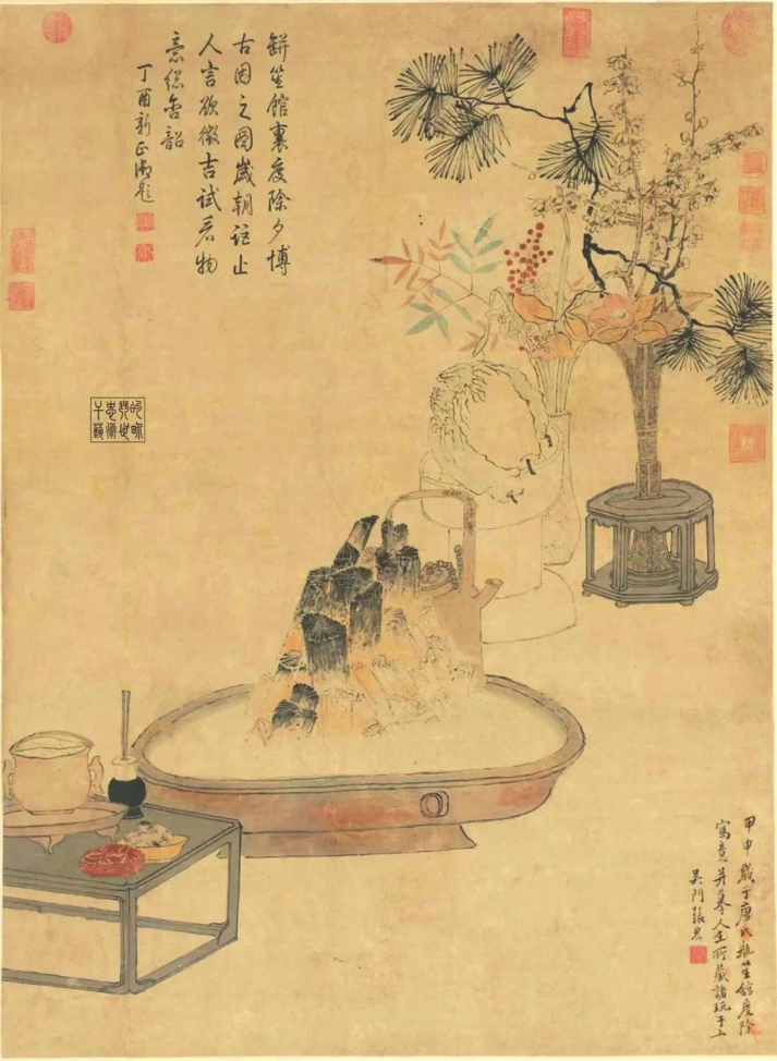 中國(guó)插花藝術(shù)歷史悠久,其中文人插花以其獨(dú)特的藝術(shù)面貌與審美趣味,成為傳統(tǒng)插花的典型代表。文人插花始于五代,興于宋元,于明代發(fā)展至高峰。萬(wàn)歷年間,文人雅士熱衷于插花活動(dòng),出現(xiàn)了《瓶史》《瓶花譜》等理論典籍,與明代畫(huà)家陳淳、沈周、唐寅、仇英、陳洪綬等人的相關(guān)創(chuàng)作相互呼應(yīng),確立了文人插花的審美范式。