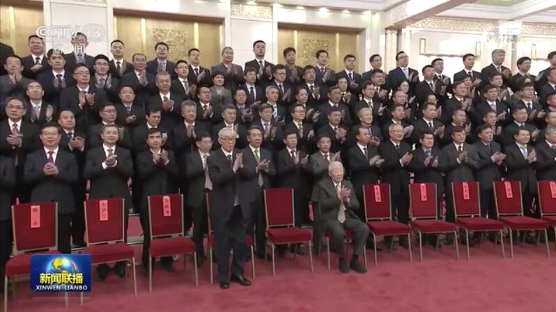 人民大會(huì)堂北大廳氣氛喜慶熱烈。上午10時(shí)許,習(xí)近平等黨和國家領(lǐng)導(dǎo)同志步入會(huì)場,向參研參試人員代表揮手致意,全場響起經(jīng)久不息的掌聲。習(xí)近平同孫家棟、欒恩杰等親切交流,并同大家合影留念。