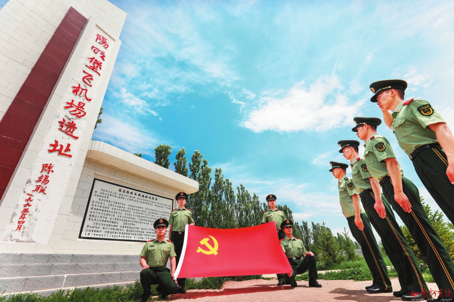 理想如磐,信念如鋼?!捌咭弧鼻跋Γ渚轿骺傟犘弥葜ш牻M織黨員在“陽明堡飛機場遺址”重溫入黨誓詞。 楊旭東攝